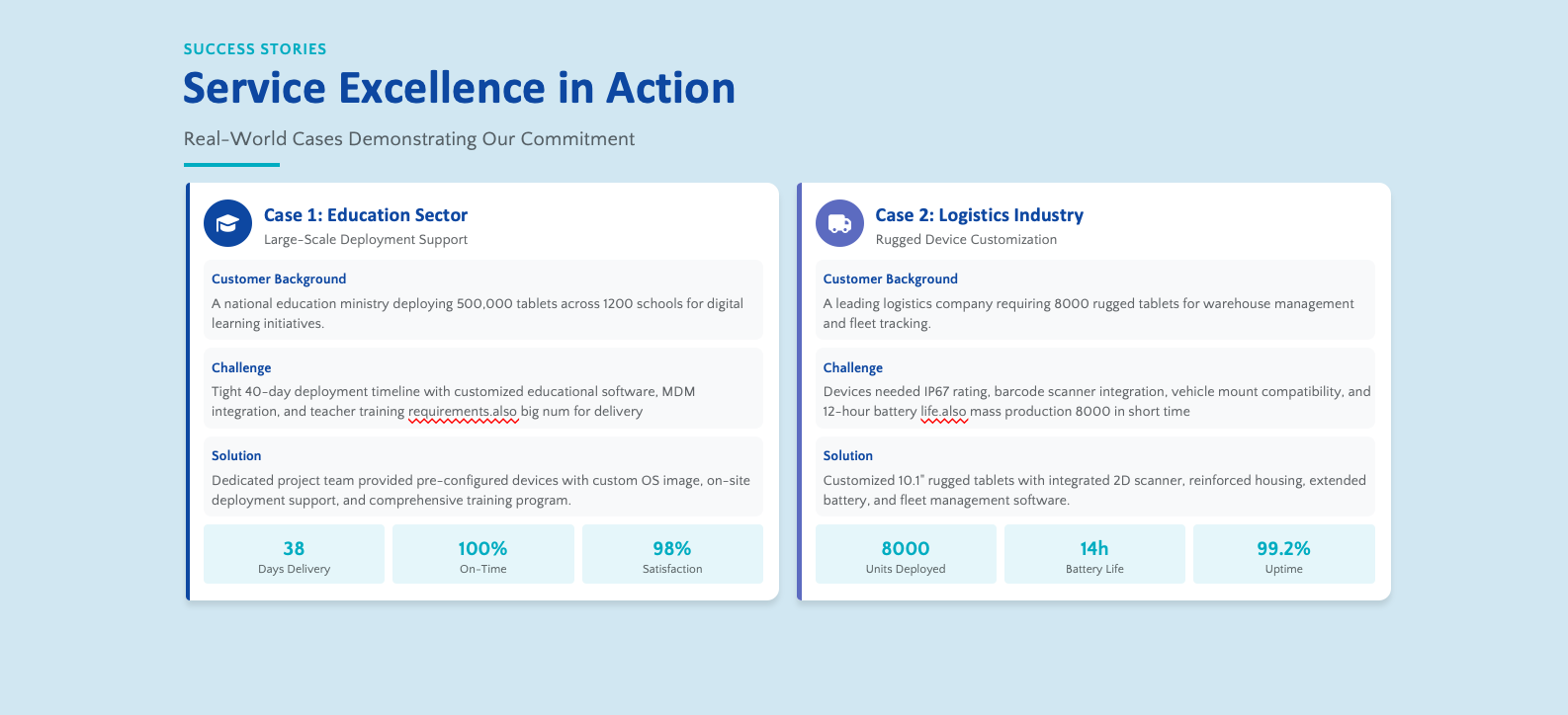 Our solutions power devices for well-known global brands, enhancing their market presence with reliable service backing.